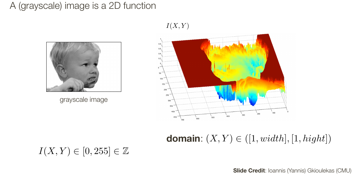 比如我们拿灰度图做例子,即只有一个通道,大小为M x N的图片,就可以很自然的表示为 I(X, Y),其中 (X, Y) ∈ ([1, M], [1, N])