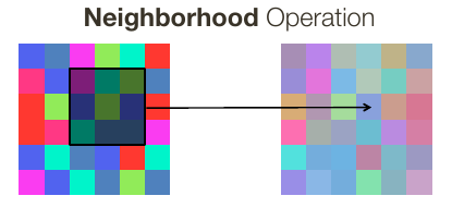 邻域运算则考虑像素周围的邻域信息,对输出像素进行计算: