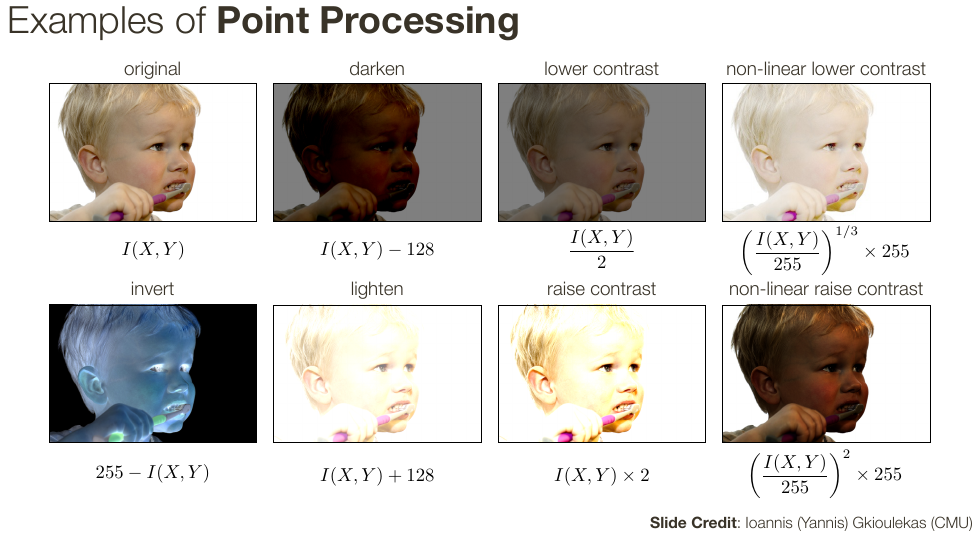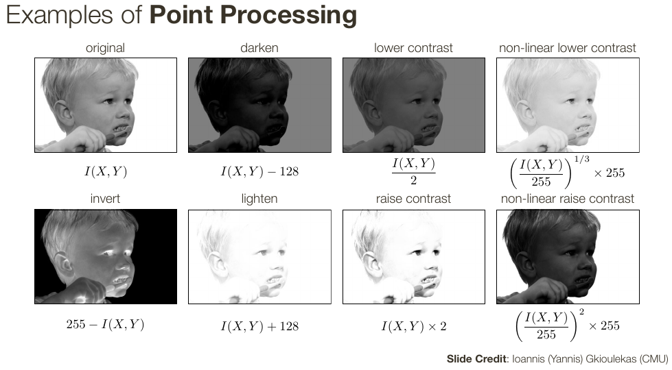 点运算是最基本的滤波操作,它对图像中的每个像素独立应用一个函数: