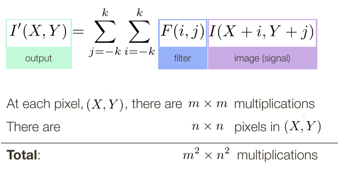前面提到了,直接进行卷积/Correlation的时间复杂度为 , 对于大规模图像和滤波器,这种方法效率较低。为提高效率,可以采用以下两种方法: