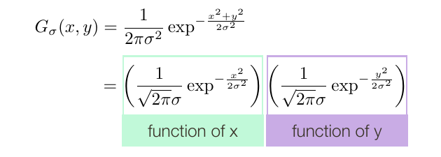 例如,高斯滤波器是可分离的,可以先对图像的行进行一维高斯滤波,再对列进行一次一维高斯滤波,最后做叉乘