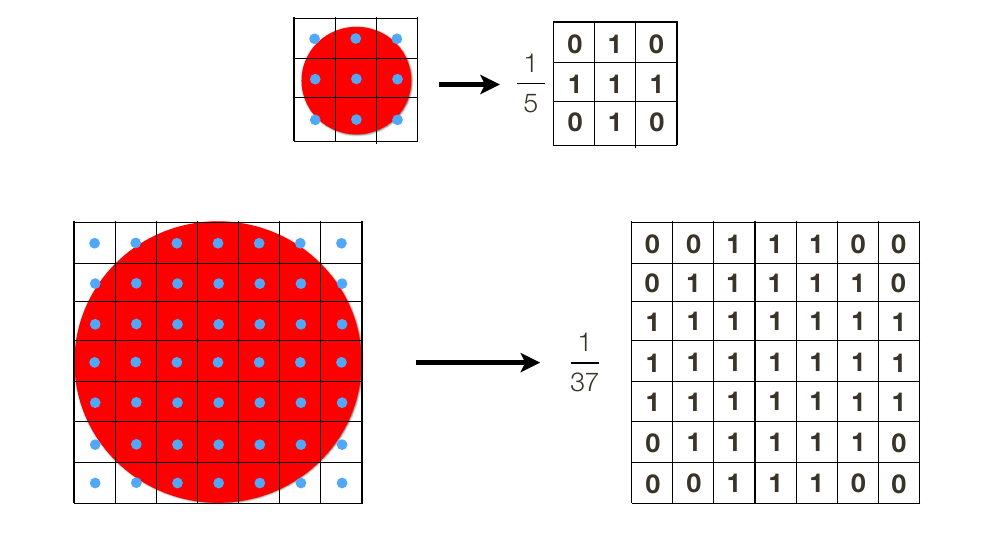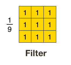 又被称为平均滤波器 (average filter or mean filter),简单来说就是把一个方形范围内的像素值做平均就行了。