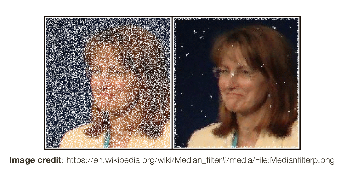 这里,, 是邻域的大小,且一般来说假设M为奇数,假设 M 为奇数的主要可以让滤波更加的简单直观。例如,无论从左到右还是从右到左,应用奇数尺寸滤波器的结果都是一样的。