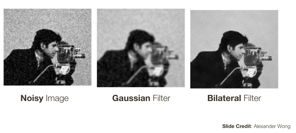 和高斯滤波器相同,但是不同的像素会有不同的权重。