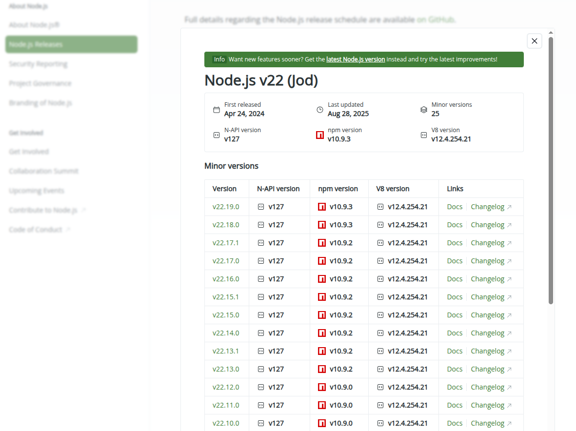如果你想查询其他 Node.js 版本对应的 V8 版本,也可以去