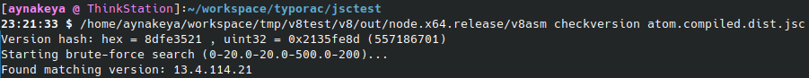 虽然我尝试了使用node中的v8,但是node中的v8也不能反编译typora的jsc文件。