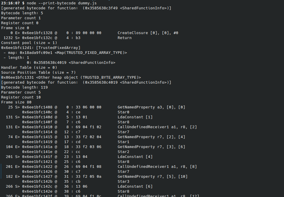 首先要注意到的是V8 bytecode的内部结构不是固定的。